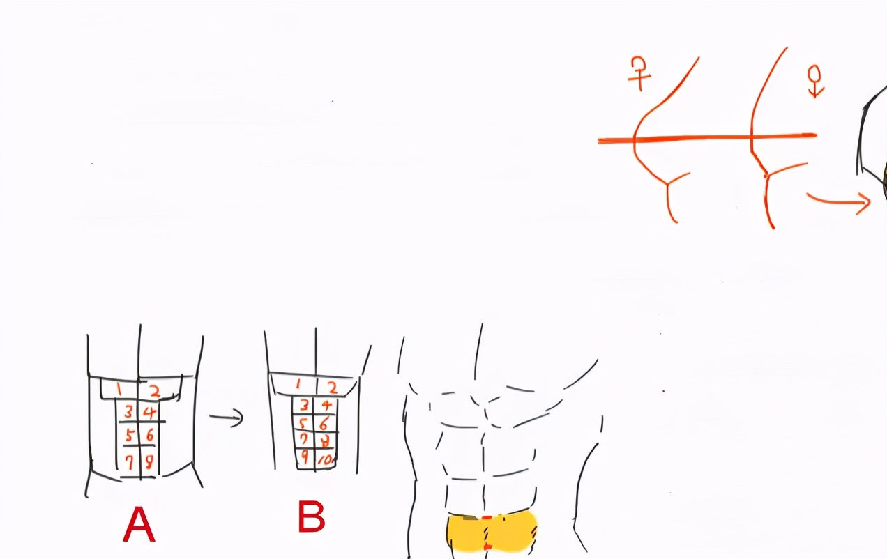 A中7。8的长条部分像R图那样分隔开肚脐也根据人不同位置似乎