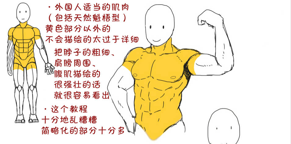 外国人适当的肌肉(包括天然魁梧型)黄色部分以外的不会描绘的太过于详细