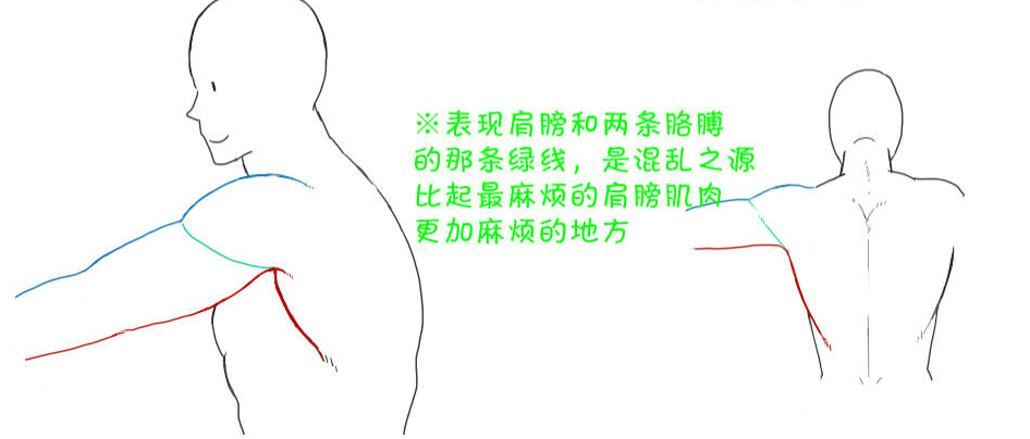 表现扃膀和两条胳膊的那条绿线,是混乱之源比起最麻烦的肩膀肌肉更加麻烦的地方