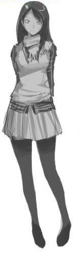 接着就分块给头发、肌肤、衣服、围巾一个一个用单色进行涂满。阴影已经在中添上去了,所以一下子就完成了涂色步骤。将色相、饱和度用滤镜将各个颜色调整成自己喜欢的感觉。决定好颜色的话,将所有的图层合成一个。然后再添加一下类似围巾的样子、服装花纹等细节,向着最终进行。