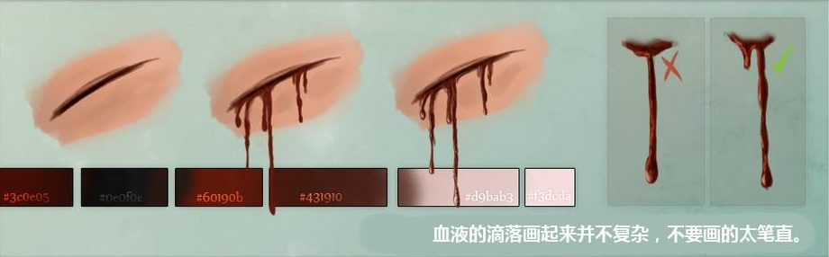血液的滴落画起来并不复杂,不要画的太笔直。