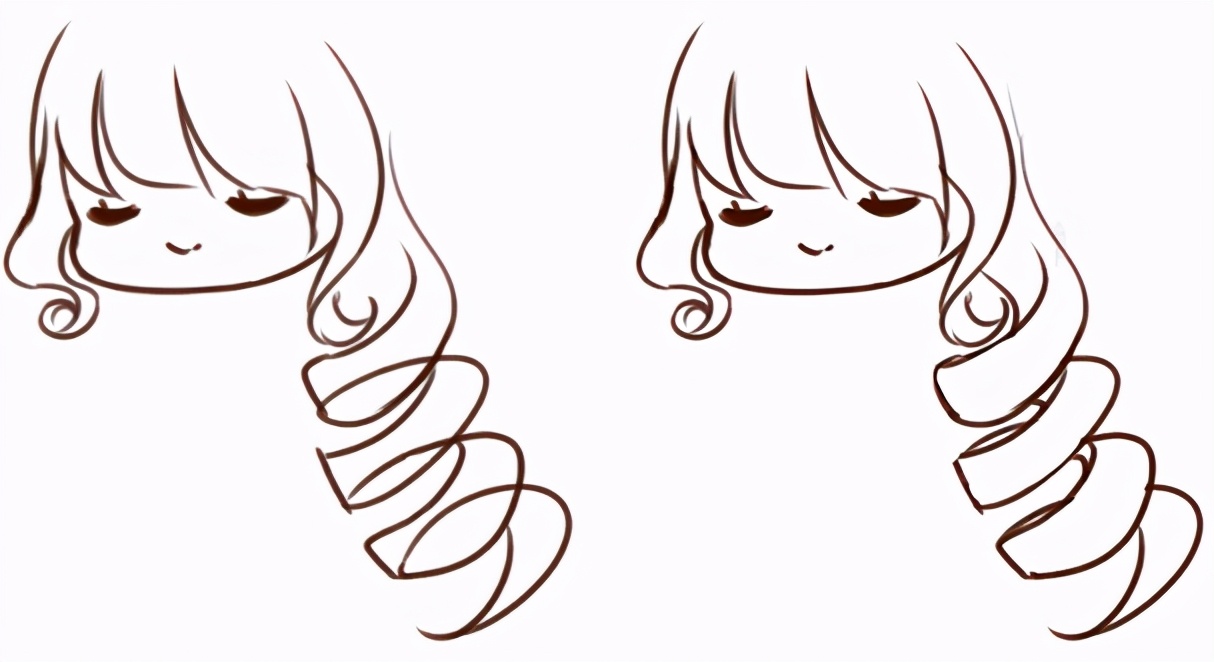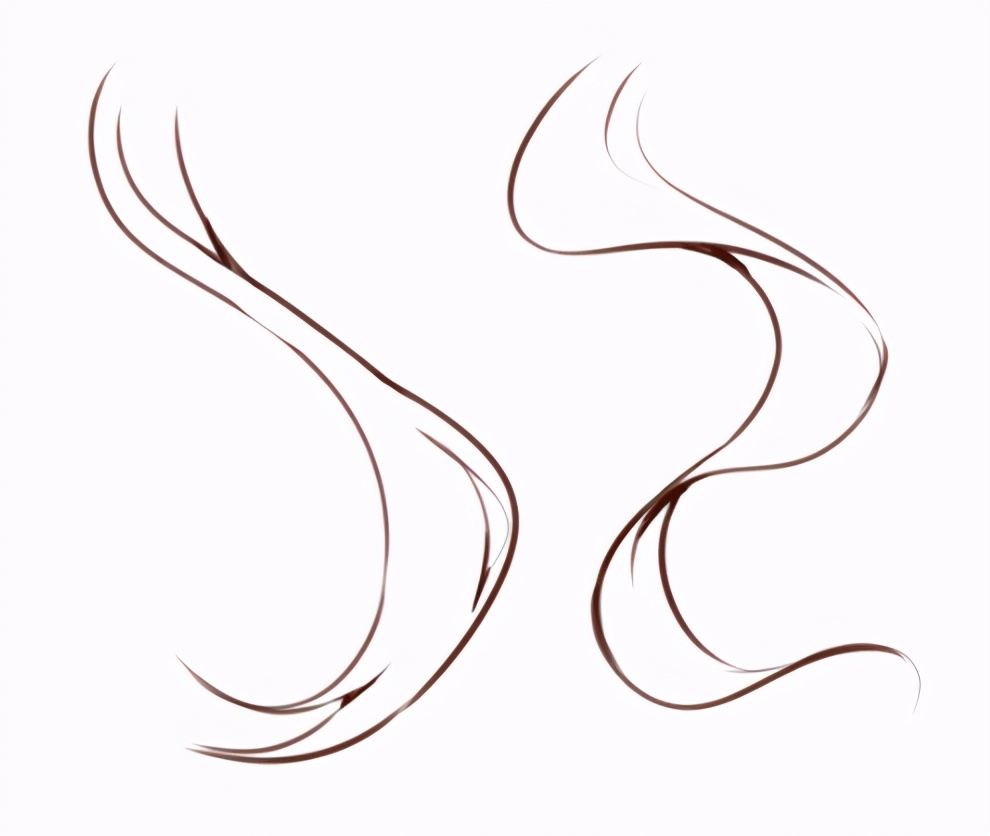 使用S曲线也是一个好主意。即使头发是笔直的,如果使用延长的S形曲线绘制,也会感觉到光亮和颤动。S形曲线在波浪形头发中更显眼!