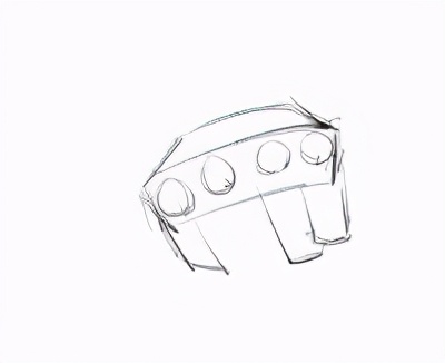 1234,然后这些地方就会生出来你的手指,这里一个。好。然后再去调整一下。这里一个。然后这里两个,然后它的一条线是会根据你手指的一个长短,对吧?终止是不是最长的?中指最长的,所以说它会在底下一点点再下来一点,这里往上画。