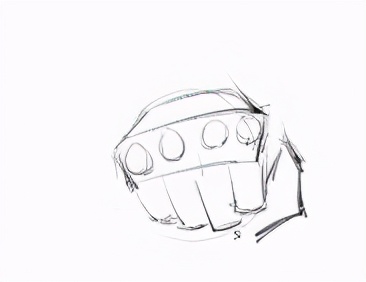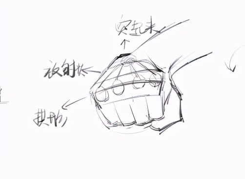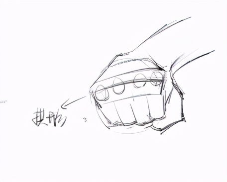 然后我们从这个角度去看,他握紧拳头正要挥向你的时候,他拳头已经握好了,他要捶你了,对吧?在拳头是长什么样,就是这样子。这一块它会有一个透视,近大远小,这是什么?这是手掌。