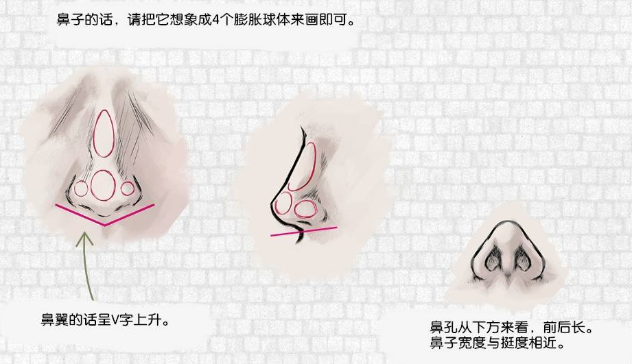 鼻子的话,请把它想象成4个膨胀球体来画即可。