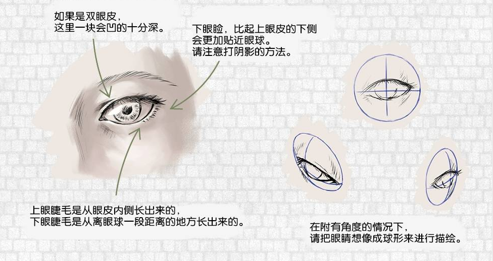 实际上,并没有必要以这个顺序来进行描绘不过由于在眼睛周围区域凹凸十分复杂,还是在脑子里有一个这样的设想图比较好。