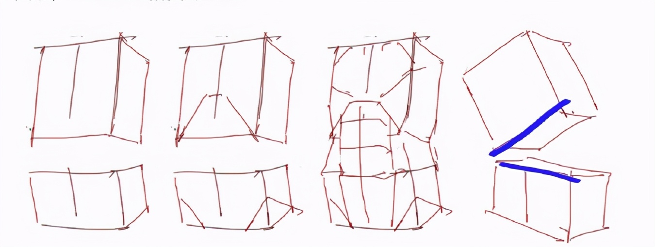 同样的,下面也可以用同样的方法旋转,当两个体块同时旋转,加上之前的折叠关系的画法,你已经可以掌握所有的动态了。