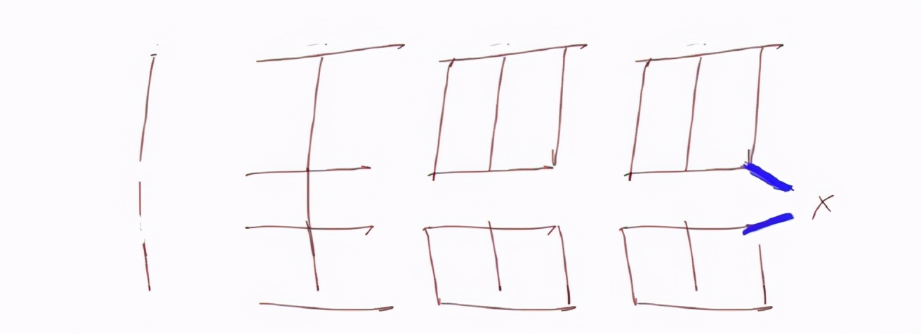 调整思路,先画个大体的走向,然后把比较确定的那一排线先画出来,之后根据“走向线”补全两个面,接下来是关键,优先处理蓝色的边,确定体块关系,蓝色边会相交与X点。