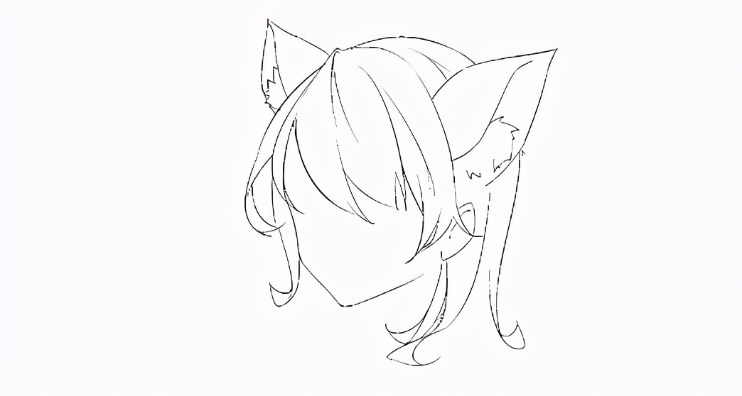 今天线稿就先给大家画一画头发的部分,后面这一块就不用画这么多细节,直接带一点点,然后带一两条线就可以了,然后把耳朵画出来。