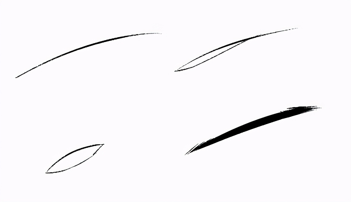 然后还有一种的话就比较短,它其实就是上面这种的变形,还有一种的话就是实心的稍微粗一点的,这种的话最后那种可能比较表达男生的,眉毛多一些。比如说我们这样的画一下,我们就修一下他的前面,其实这个有一点点像那个女孩子在修眉毛那种感觉,这4种眉毛大家都可以去尝试一下,不同的画面,它搭配出来的效果它不太一样,所以你就要根据你的眼睛去选择一个合适的为毛就可以了。