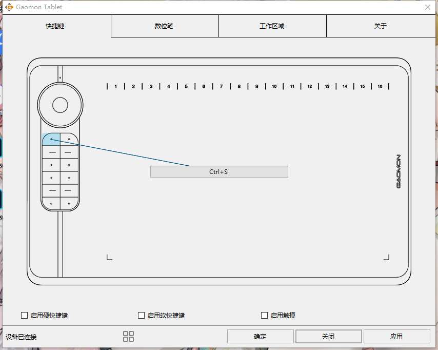 一样打开驱动,在快捷键选项设置,每个软件的快捷键是不同的,在设置之前,自己先要了解各个软件的快捷键功能,以及对应的快捷字母,手机连接数位板时候,快捷键无用