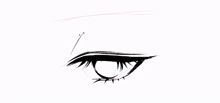 好,剩下的话就把这个眼皮探的程度层次,还有眉毛给画一下就可以了。眉毛可以画的稍微粗一点,就ok了。眉毛可能你在整个绘制过程中可以适当的去调整它的角度,或者它的长短都行。看大家自己的需要,然后我们把草稿给关掉,整个眼睛就画好了。