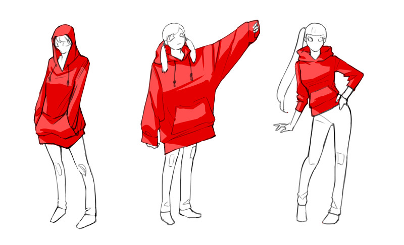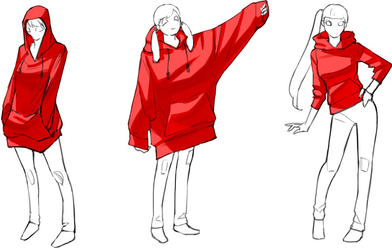 我穿着连帽衫作为如何绘制三维衣服的示例。