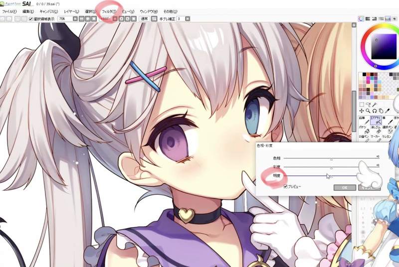 最后,使用吸管工具为反射光着色并跳过上睫毛的颜色。调整上睫毛的亮度,并降低色调,以完成“睫毛”。