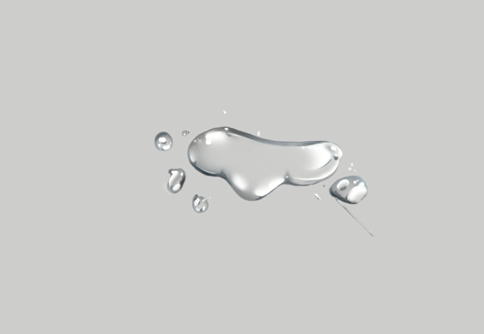首先我们用硬边的笔刷画出想要画的透明材质的形状(这里以水为例子),填充上颜色,命名为“底色”。