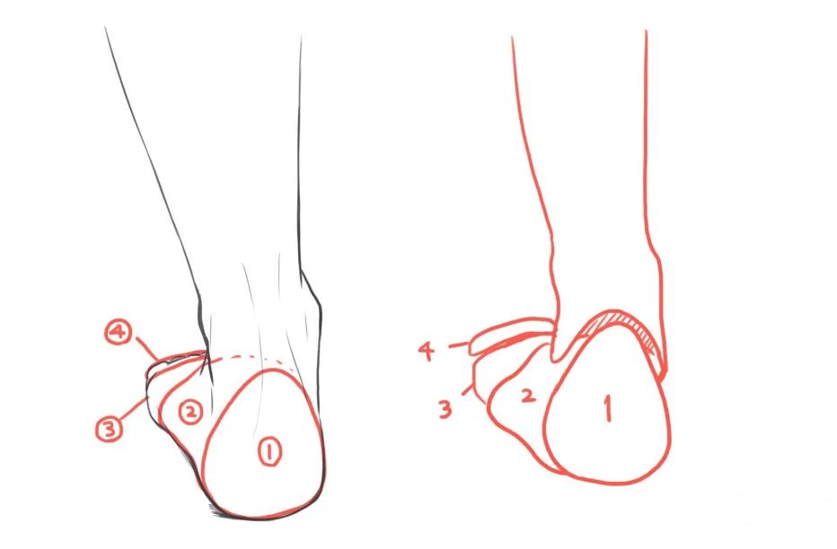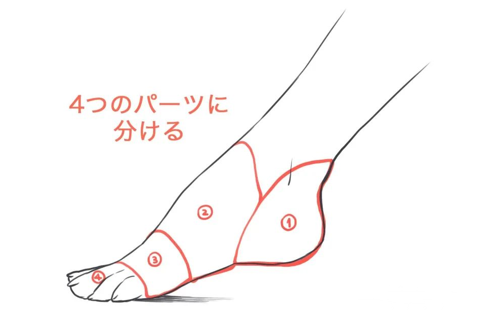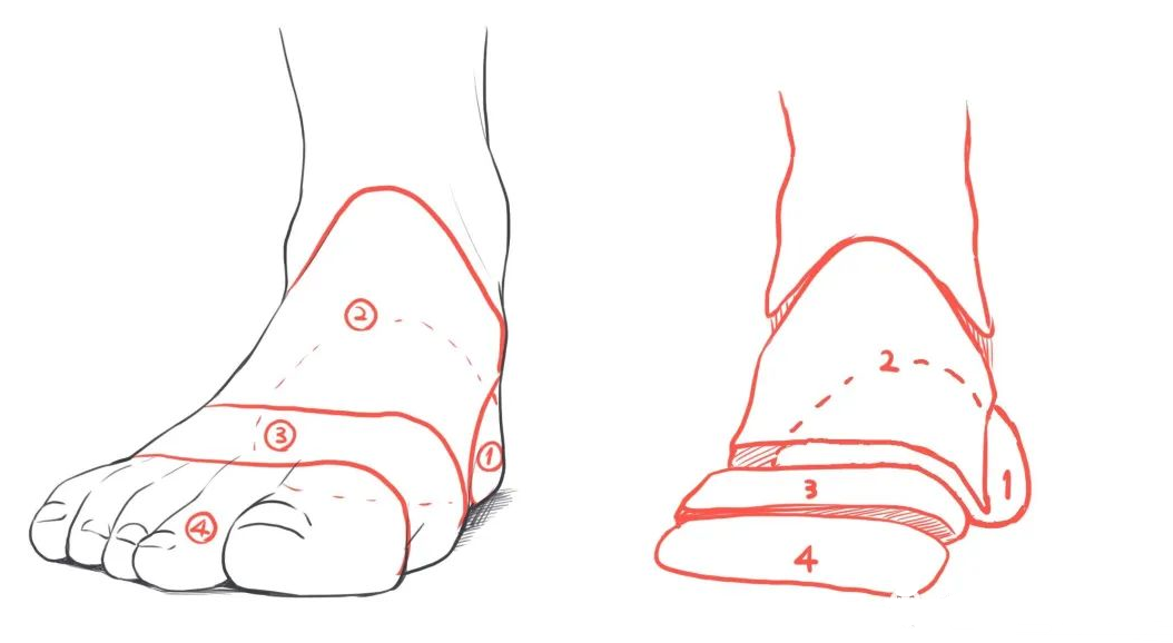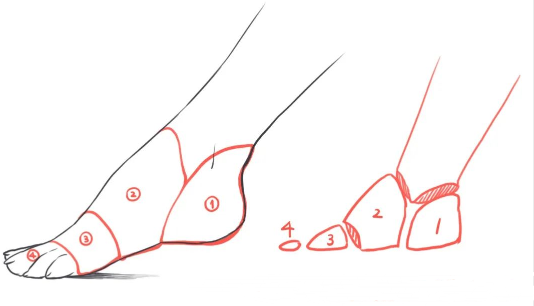 了解了脚的大致结构之后,为了便于绘画,下面我们将脚分为几个部分。