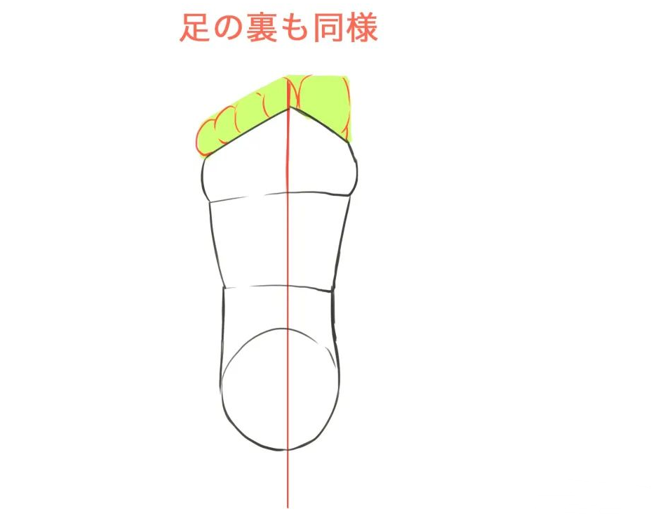 此外,脚底板的最凹处对应着脚背的顶点,可以以此为参照进行绘画。