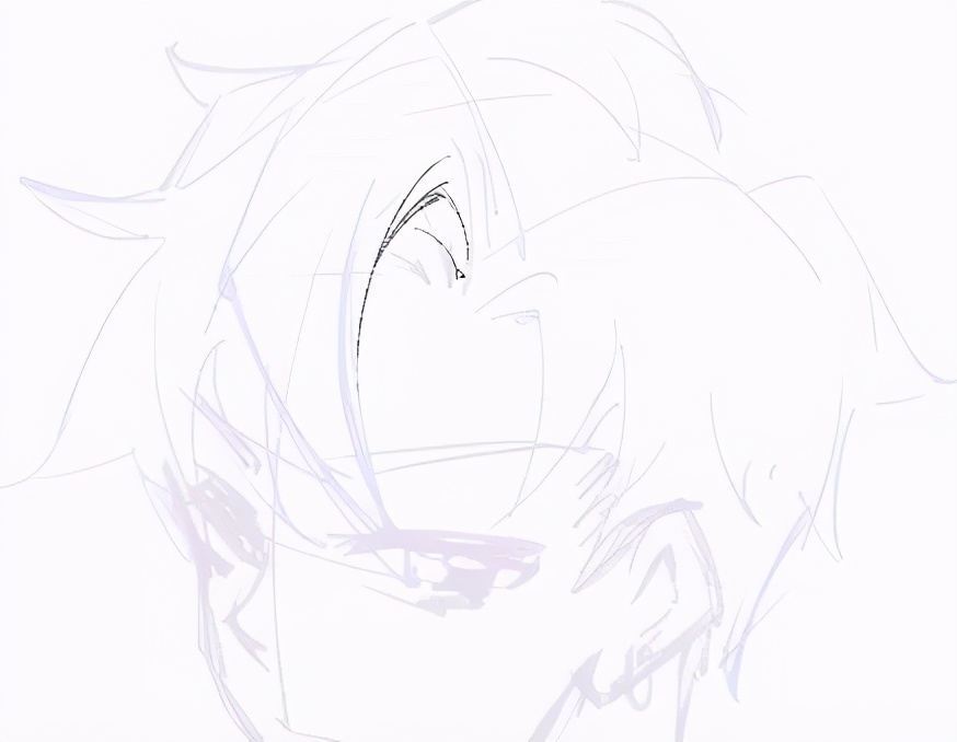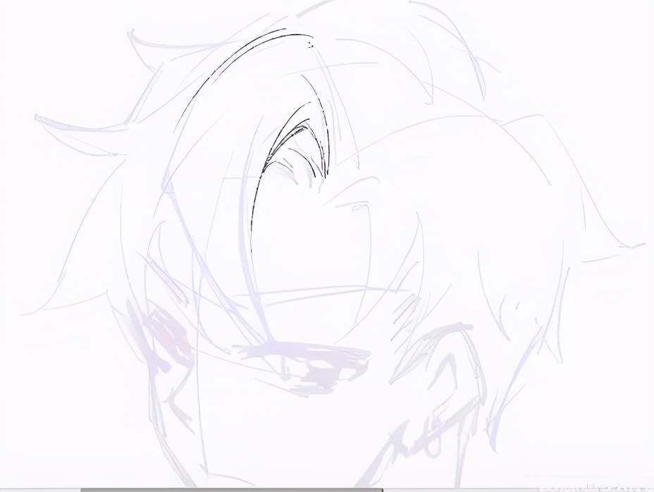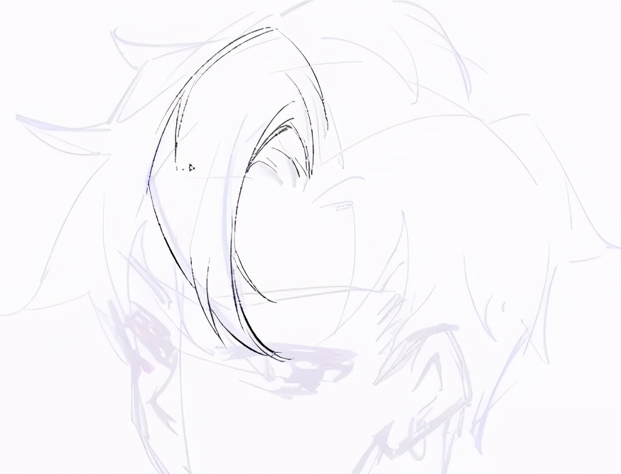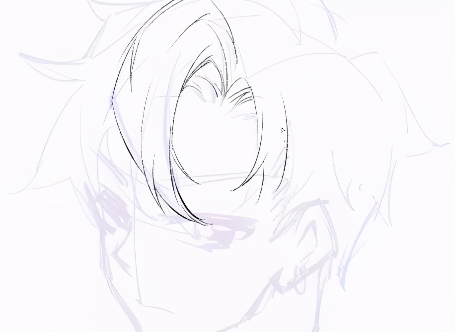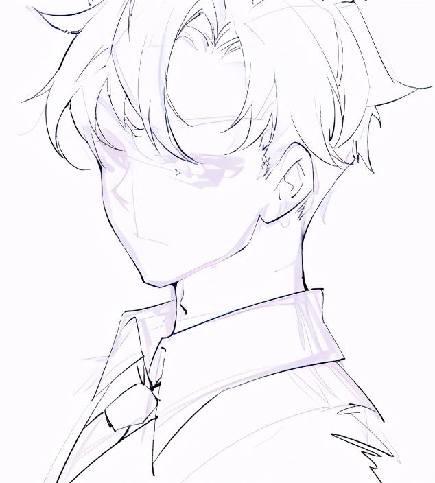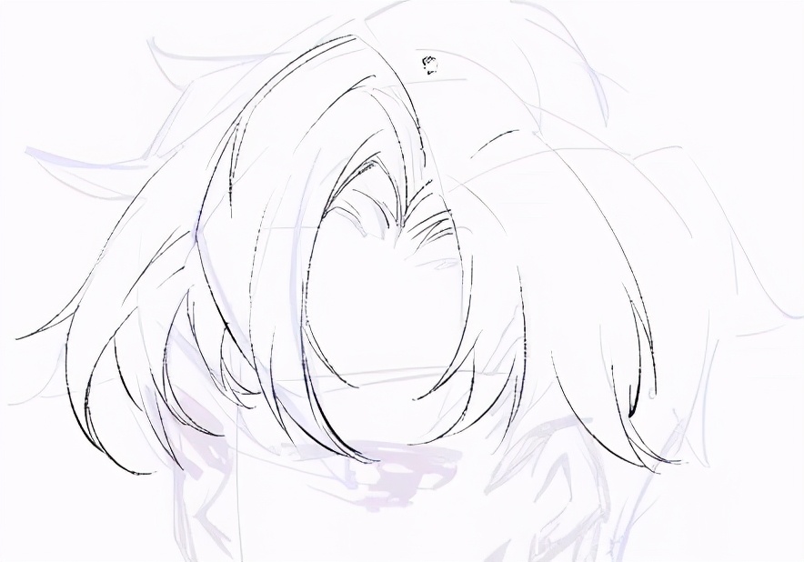 画的时候男孩子的头发它会相对来说会比较蓬松,而且比较乱,但乱的意思就是说它方向会没有那么有规律性,换句话说可以稍微随意一点,但是你随意的时候要保持大中小,还有一些错漏遮挡的一些原则就可以了。