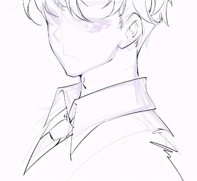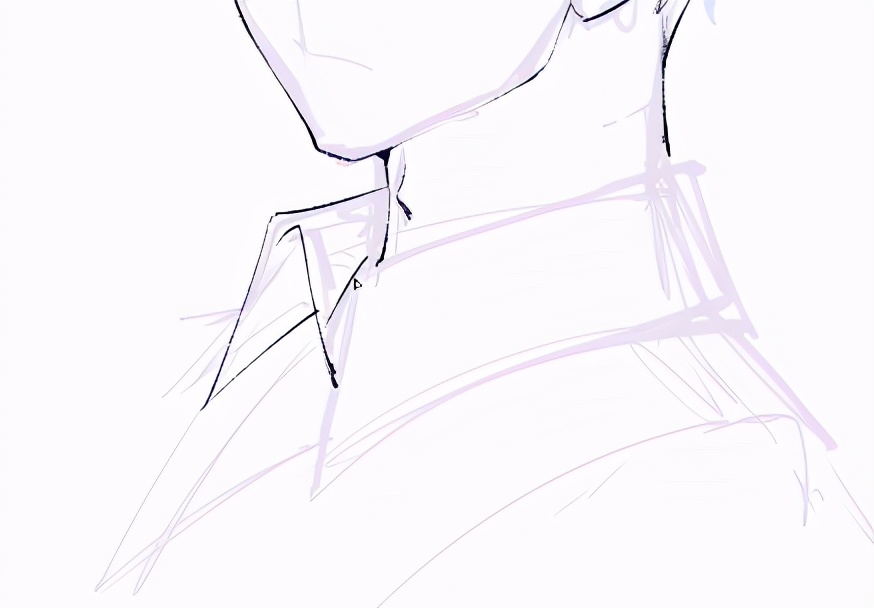 领子的话,一般领子是硬挺的那种感觉,所以的话我们画的时候就可以硬朗一点,把这个地方带一下。这样子画一下。我就画了领子有点太宽过头了,然后再用橡皮擦擦擦一下。
