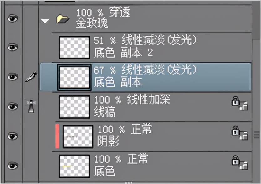 再次复制底色副本放在最上方,两个图层的叠加模式都选择“线性减淡(发光)”将其中一个图层做高斯模糊处理。并调节两个图层的透明度,直到到达自己满意的效果。