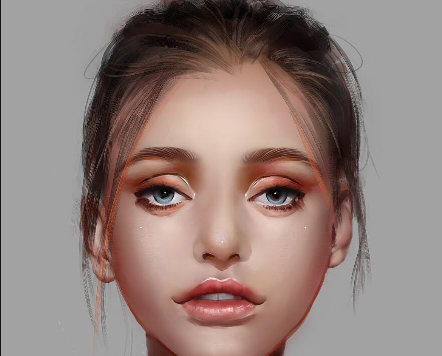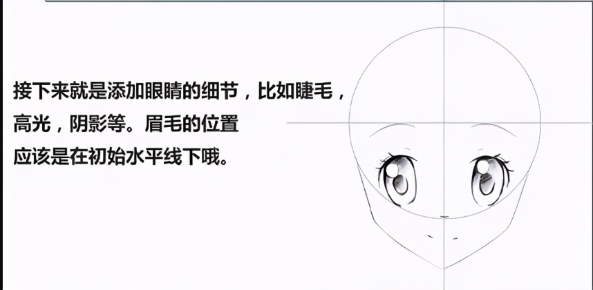 接下来就是添加眼睛的细节,比如睫毛,高光,阴影等。眉毛的位置应该是在初始水平线下哦。