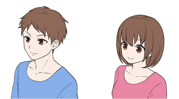 假设男生是自然卷的短发,姓是柔顺的直短发。