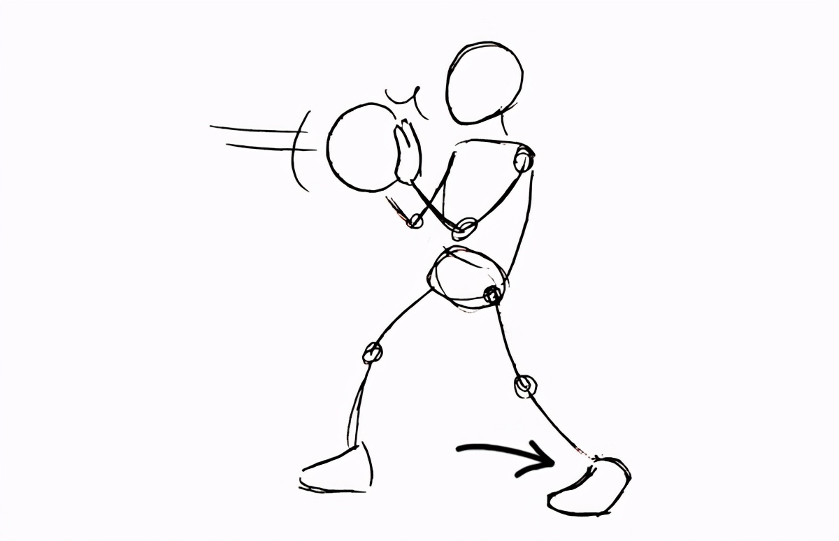 无论你是投掷一个物体还是出拳,运动都是一样的,与用来扔东西的胳膊相反的腿将会向前迈出一步。这是自然的无意识反应,避免身体在强力投掷后向前倾。武术家和类似的训练有素的运动员有时会在同一侧的腿上向前迈进,但是记住这是一个训练有素的有意识的运动,而不是你在酒吧斗殴中看到的东西。这里有一个技巧,使你的投掷看起来更有活力,或者说捕捉到动作的灵魂:选取前脚提起向前迈步,但在它实际接触地面之前的姿势进行绘画。