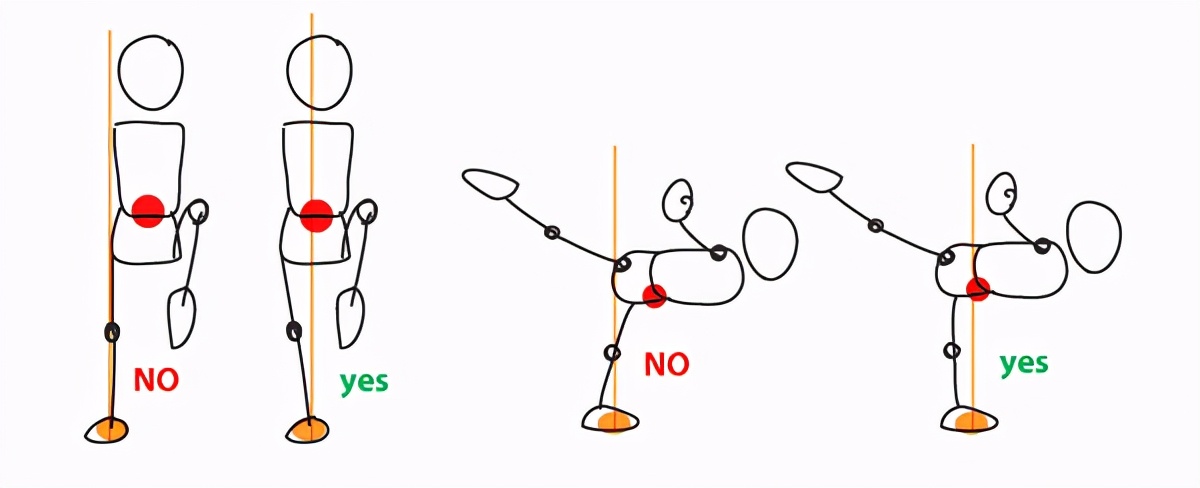 即使身体有一个令人费解的姿势,大多数时候你会发现,身体重心(CoG)仍然与支撑中心(CoS)垂直相连。