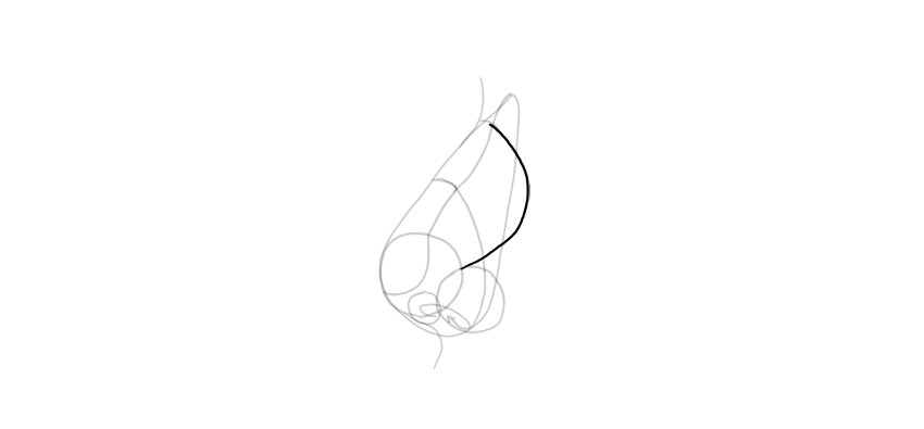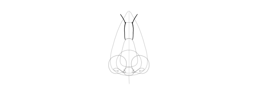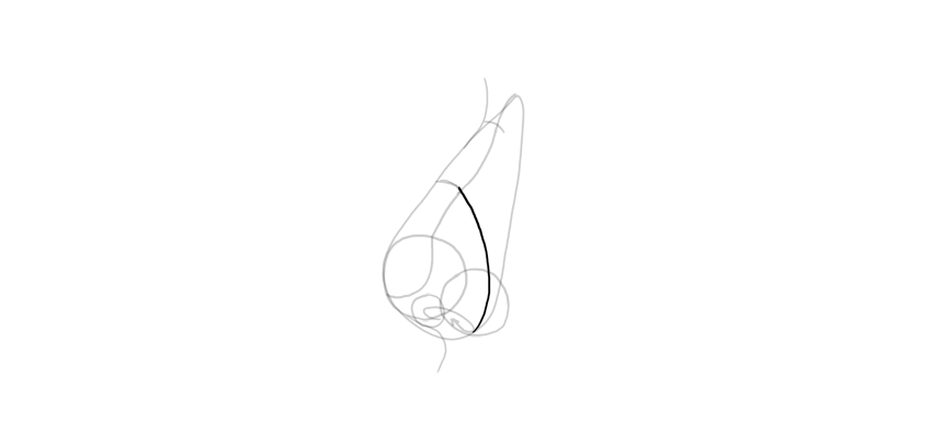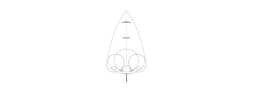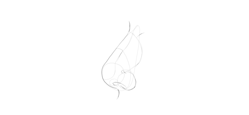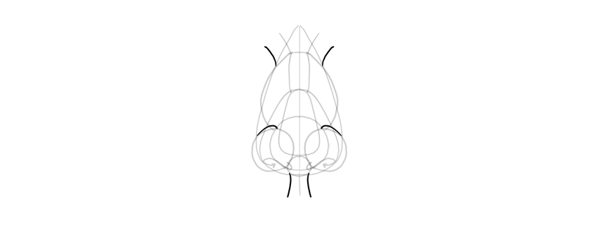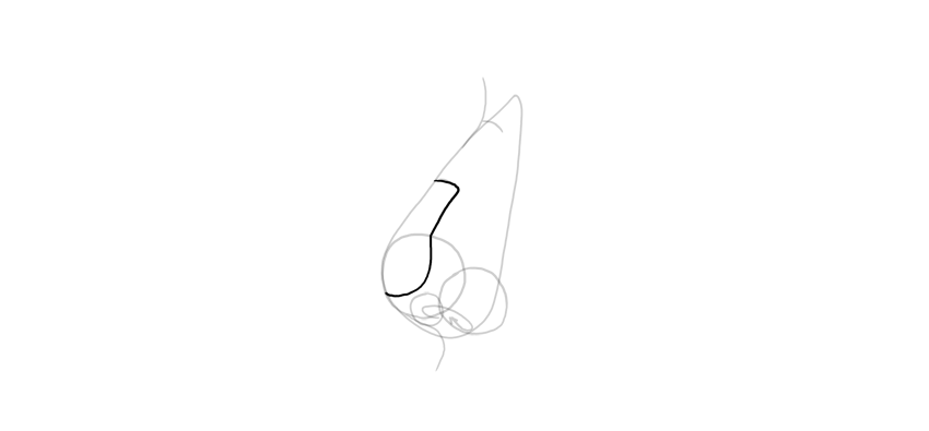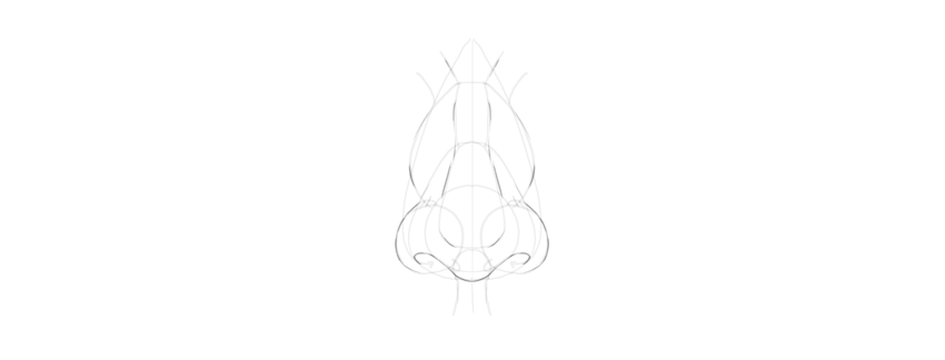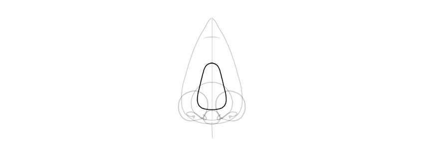 首先,按照您的想象绘制鼻子的一般形状。这将帮助您了解以后需要绘制的元素的比例。
