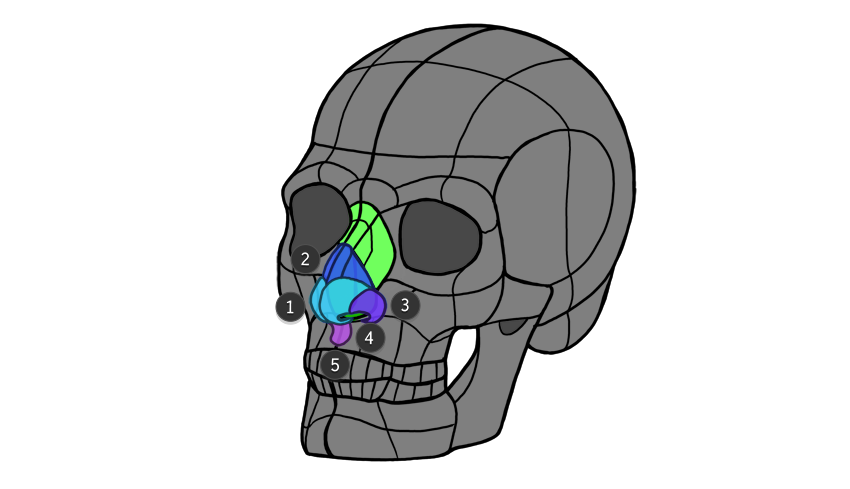 鼻子由三部分组成:骨骼,软骨和结缔组织。它的上半部分全部由骨头制成,是头骨的组成部分: