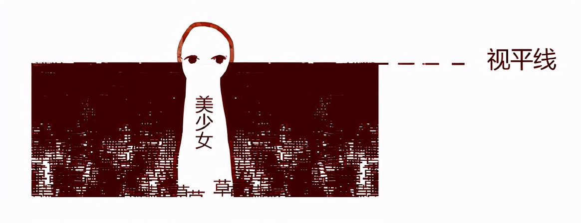 视平线取决于我们设计画面的角度,而不是画中主角的视觉。视平线是我们的摄影机位决定的。