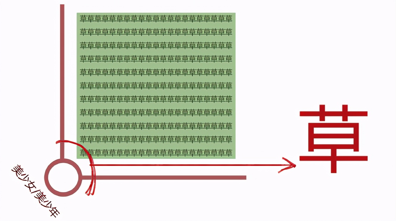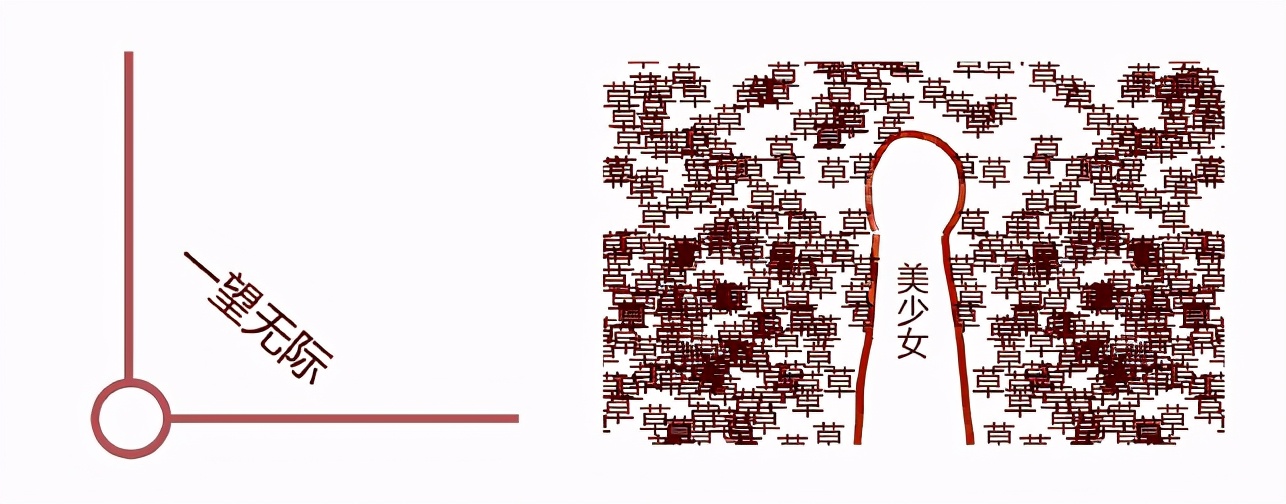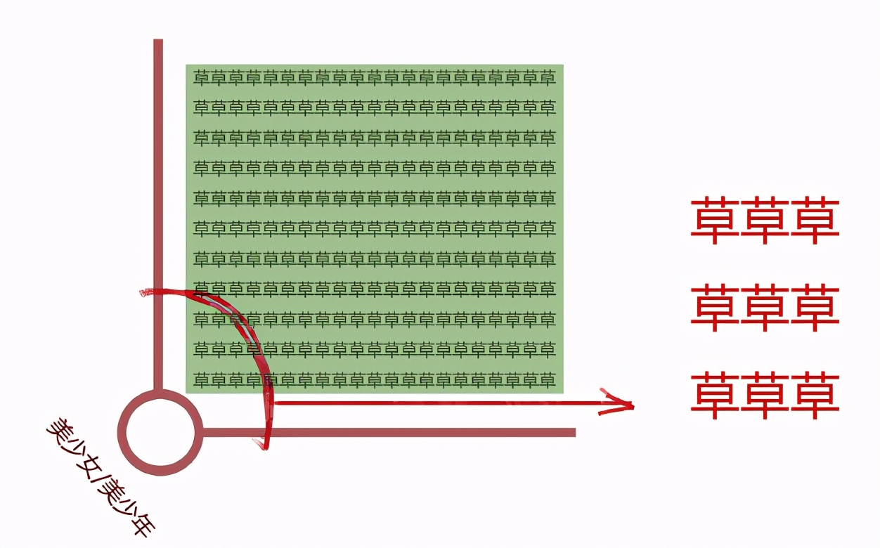 因此,在这片画不完的草地里,我们需要放一条隐形的线条,让草汇聚,重合,限制在这里。