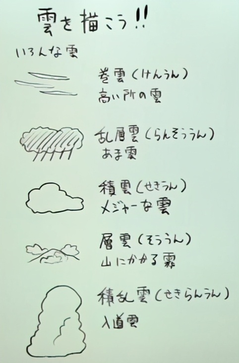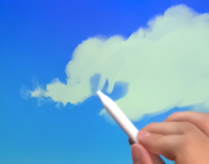 基本上,我会一边思考云的形状一边画。一边看着整体,一边调整平衡吧。