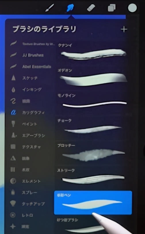 用刷子大致画出来后,用指尖工具的“疡>水彩笔”整理。画出来,重复整理一下吧。