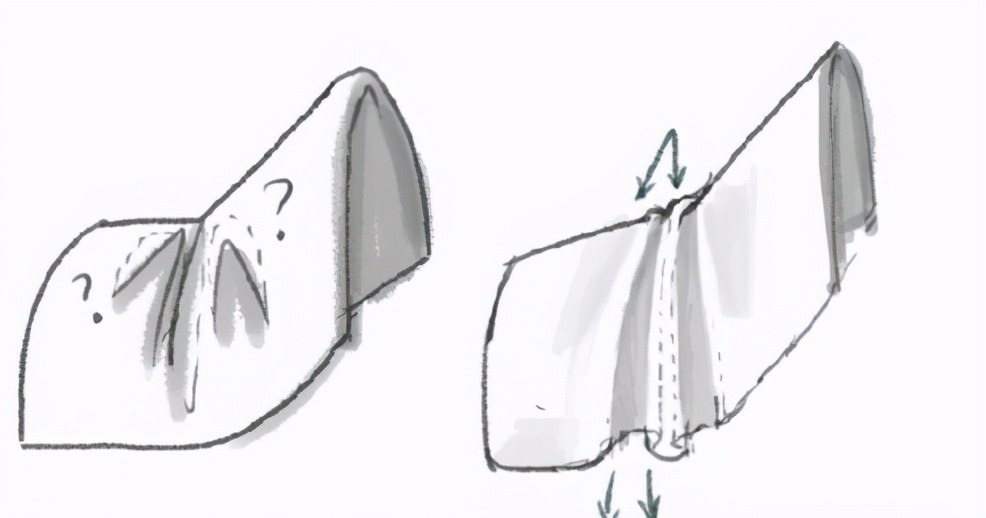 中间出现的那条线就是褶皱,但是这是2D平面上看,不是立体3D的!所以别扭曲概念哦。