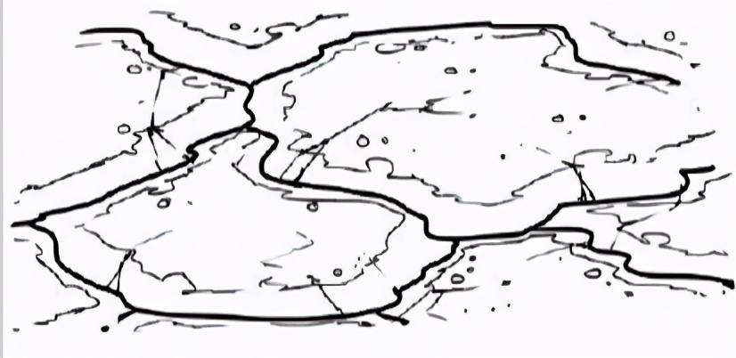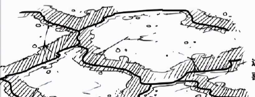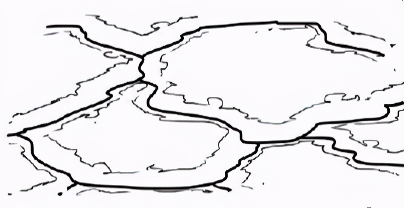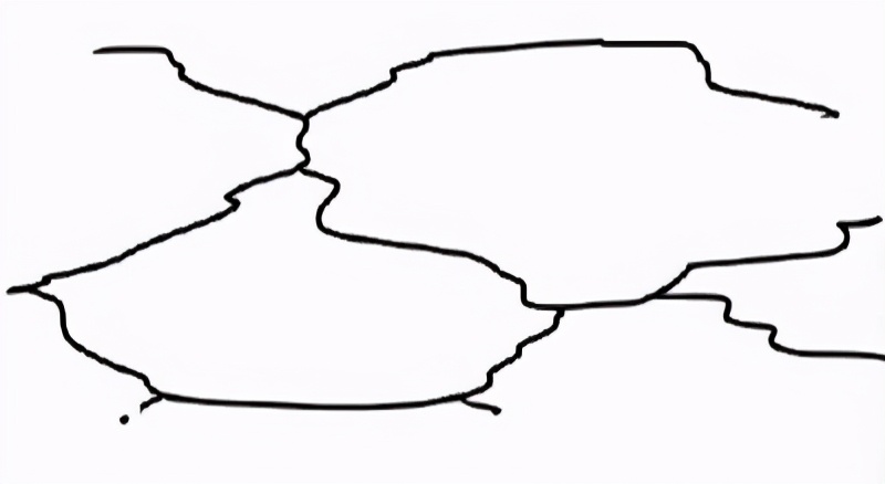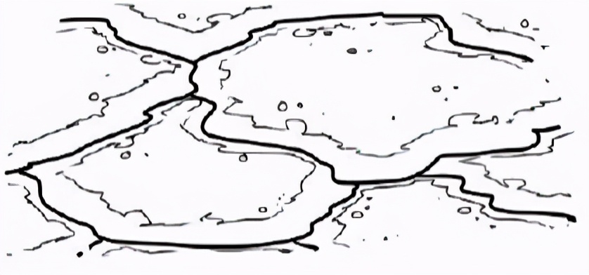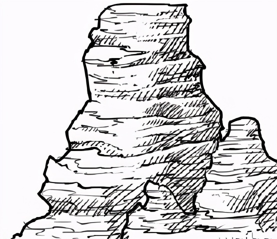 用同一只笔刷画.上一些水平的线段,线段有点微微弯曲产生出石头的体积感。当然你也可以画- -些小的石头在大的石头前面。