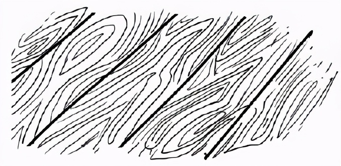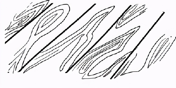 然后就是让木头的纹路变得更明显。像是在画等压线- -样 ,你可以换几种方式,避免看起来都一样。每个圈中间要留有一些空隙。
