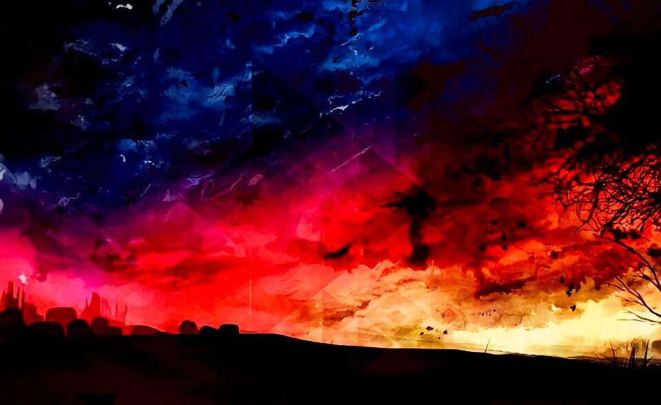 我想画的是黄昏的场景,所以上色时利用阴影模式,在整个画面营造出暗沉的感觉。