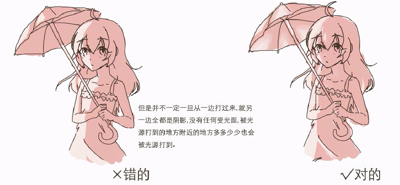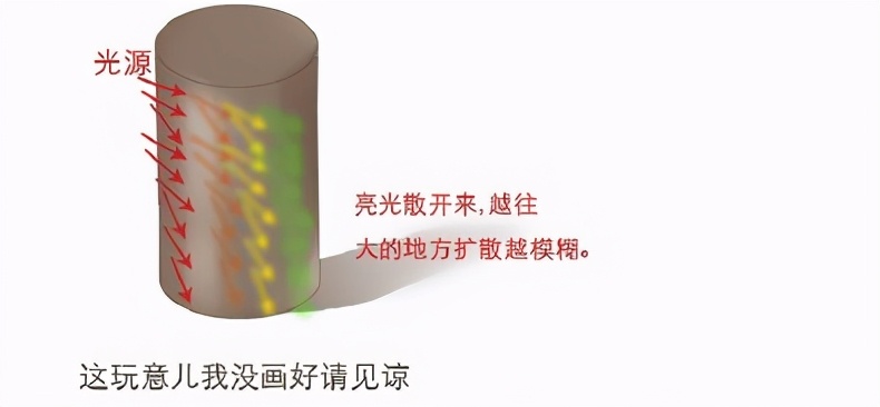 但是并不一定一旦从一边打过来,就另一边全都是阴影,没有任何受光面,被光源打到的地方附近的地方多多少少也会被光源打到。