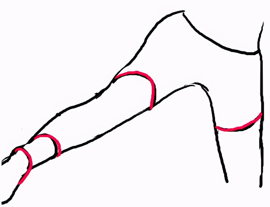 改变指甲的轮廓也会改变手指的朝向。这三根手指的轮廓是一模一样的。