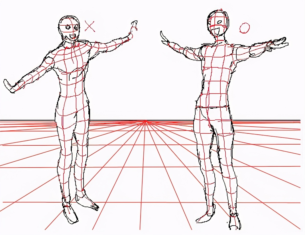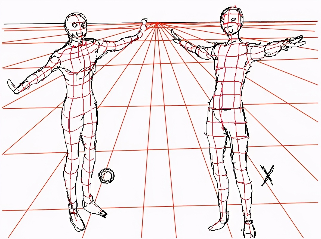 地平线位置也是要注意的一个地方。与地平线透视相对的人体透视是右边这个人物模型。