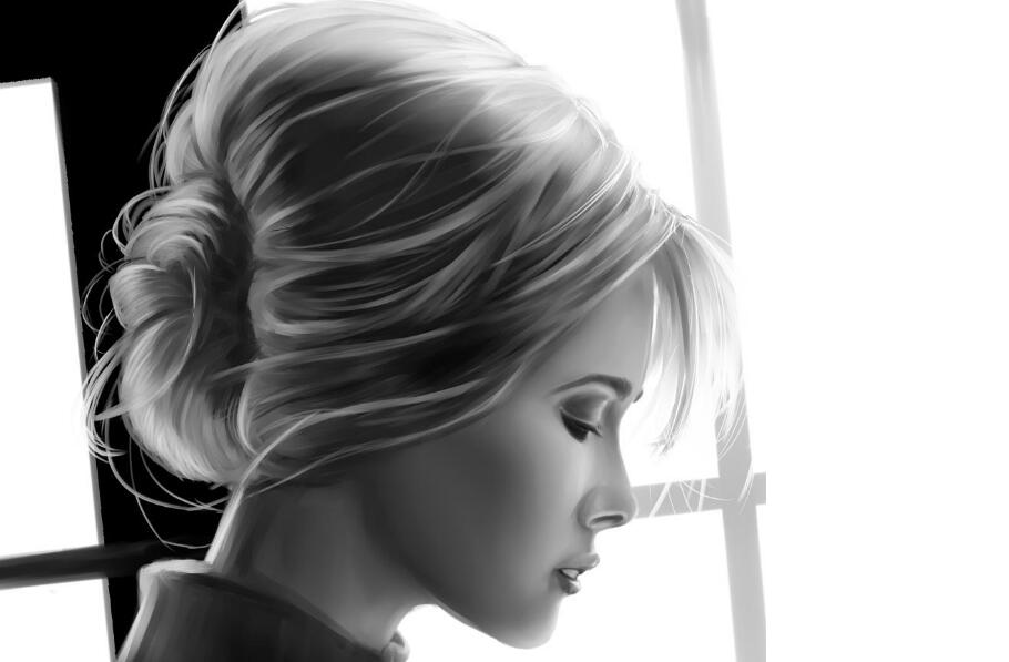 用同样的办法弄头发。先用笔刷涂,接着用橡皮擦擦来确保阴影层看起来很清爽。