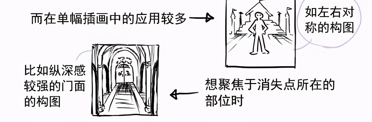 因此可以说,一点透视其实是比较少见的(因为稍微变动视线就有可能构成多点透视)其在漫画作品的背景中的应用并不常见。