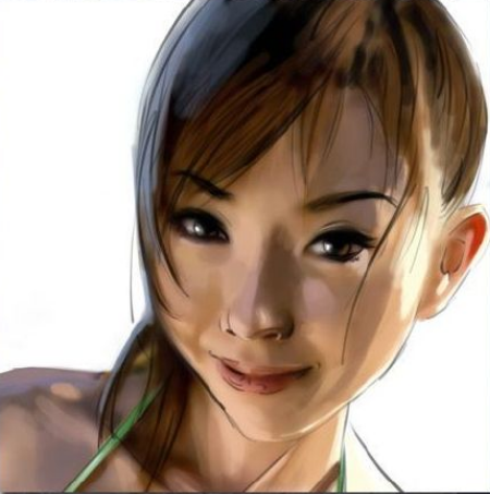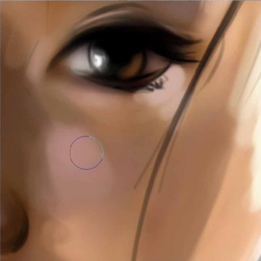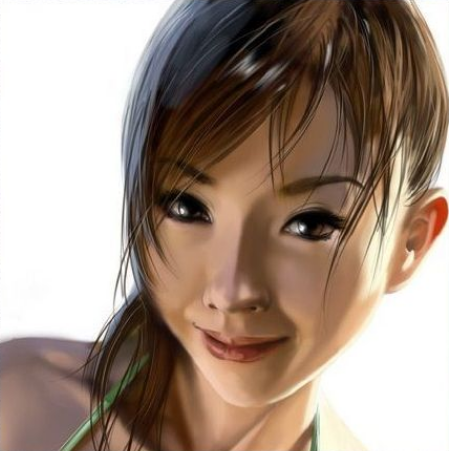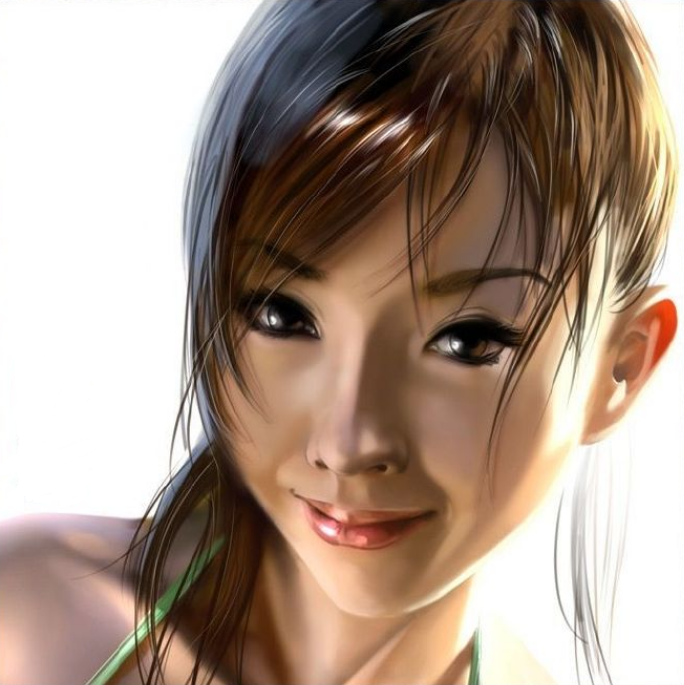 有时候呢需要浅一点的预色,有时候又要深一点。笔刷大小也不一样,有时候很小,有时候很大。画头发上的反光的时候要用白色来画。你可以用大号笔刷粗略地做模糊。别弄过头哦记住!有时候,少就是多。拼合(合并图层)图像。