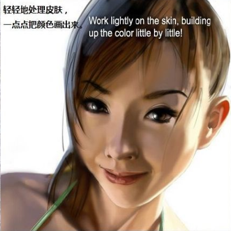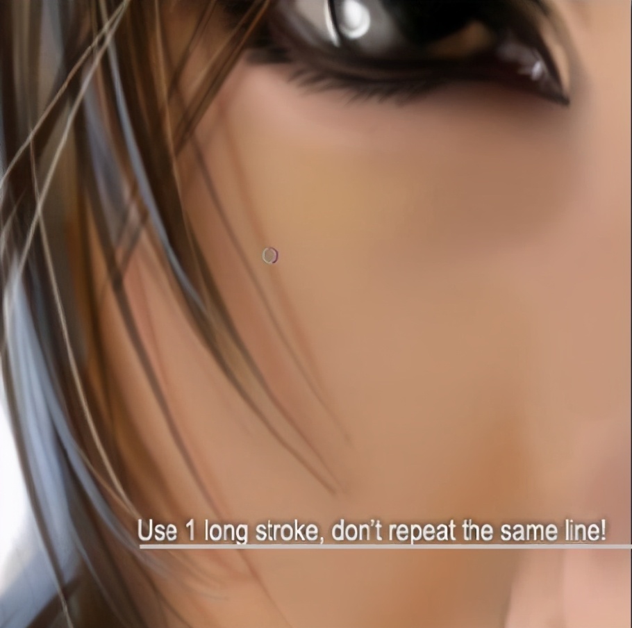 影。用这个办法来画前额、脖子的阴影,还有弄到脸上的发丝阴影。1笔勾下去,不要重复。