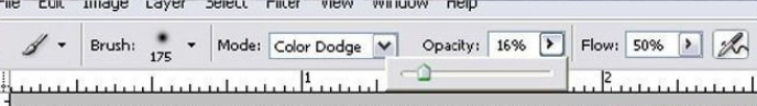 用第二种笔刷设置(就是皮肤的喷枪设置),减低不透明度,设置成"叠加”模式。选黑色,画阴