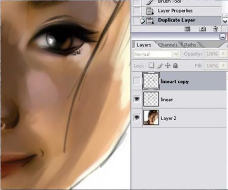 一旦你满意了,复制线稿层,然后隐藏(点击那个小眼睛)