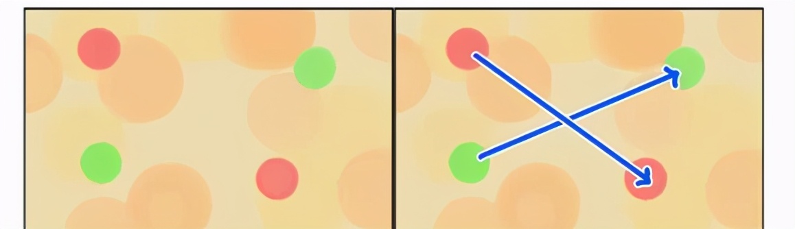 一个元素的旁边有相同的强对比或主体特征强的另一元素时,即便周围有其他元素,视线也会无视它们在二者之间进行移动。