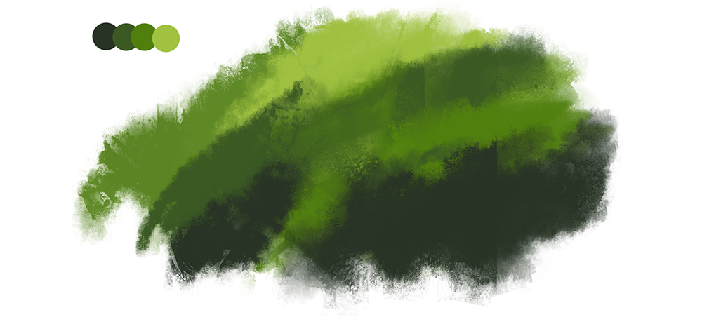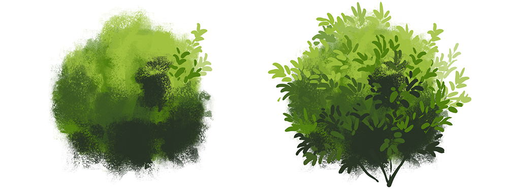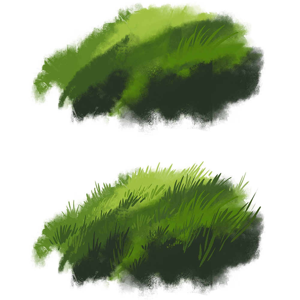 - 使用与绘制草坪相同的方法。混合颜色,然后绘制草木。