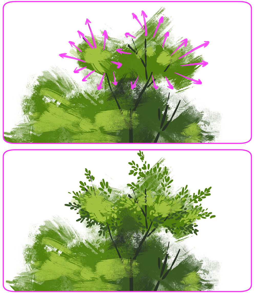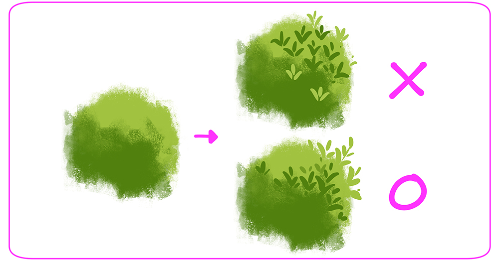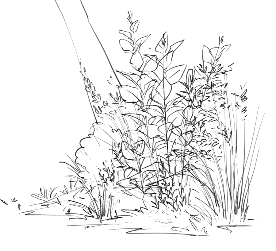 - 永远使用参考资料!不要依靠记忆来画。有很多种草,灌木丛和树木。找到许多参考资料,以获得出色的转换和配置。